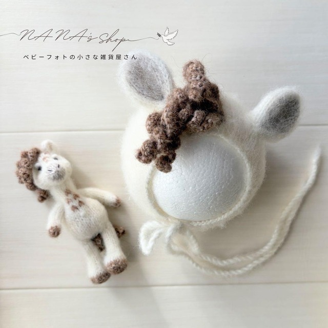 馬♪帽子とあみぐるみセット ニューボーンフォト衣装 ボンネット 月齢フォト ベビ