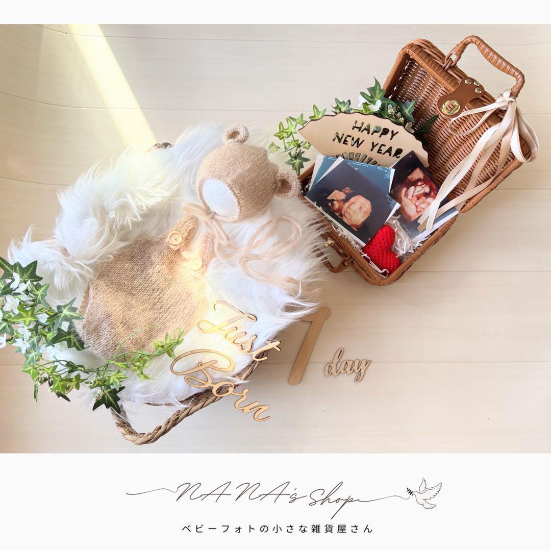 くま×バスケット×かごセット♪ニューボーンフォト撮影 出産祝いギフト 月齢フォト