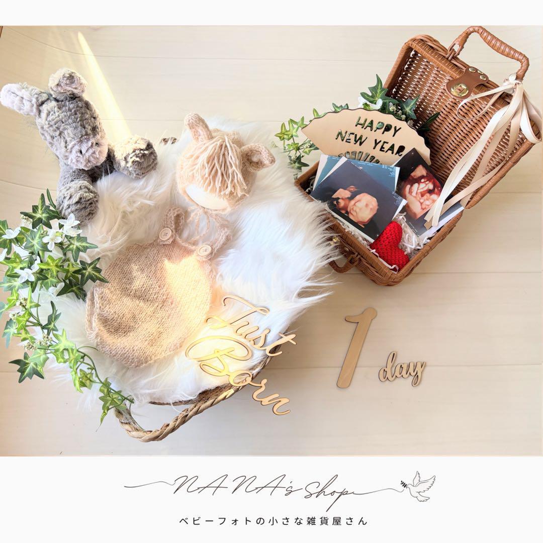 ブラウン馬×バスケット×かごセット♪ニューボーンフォト撮影 出産祝いギフト 月齢