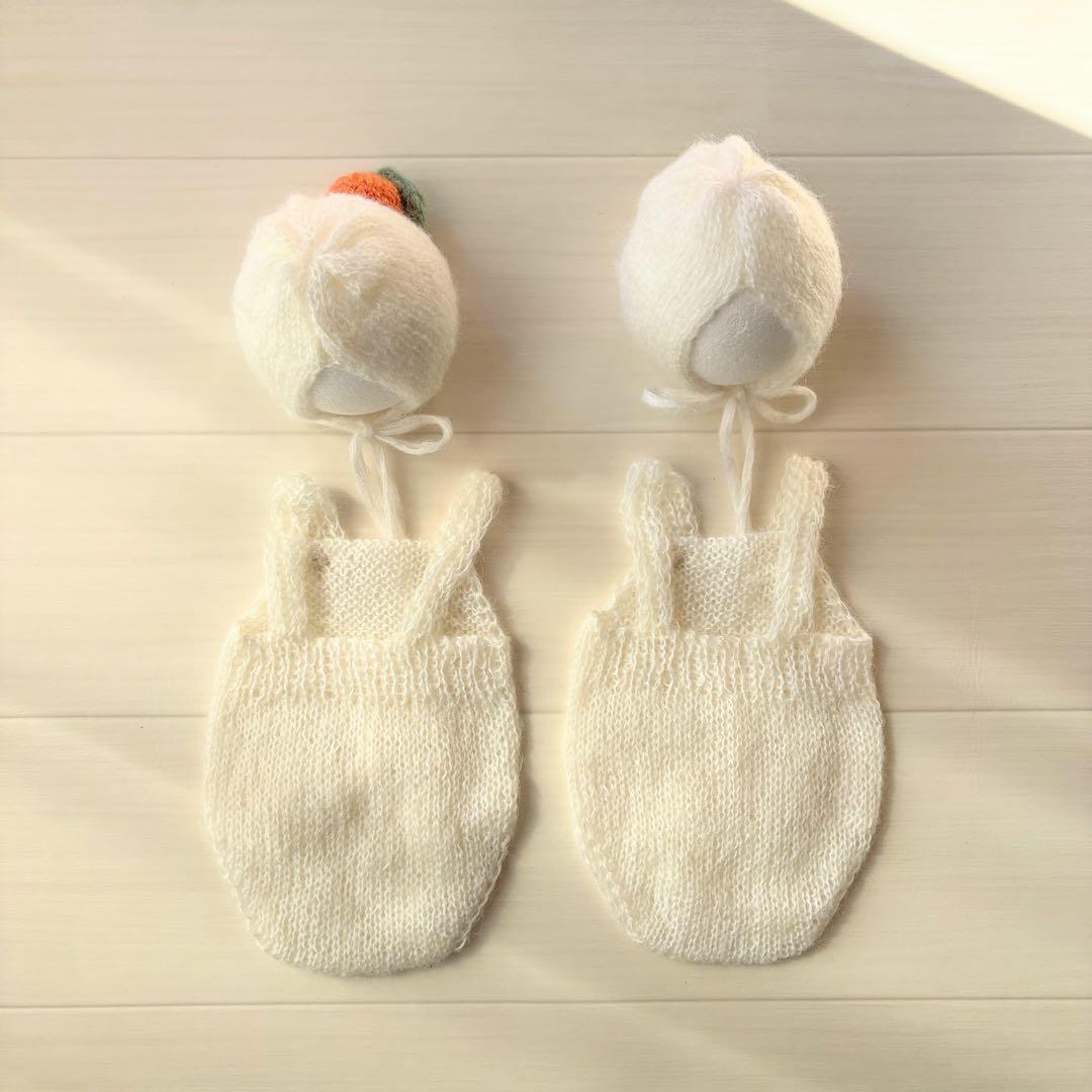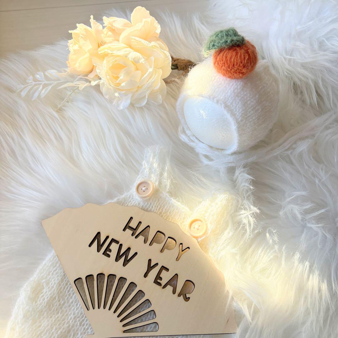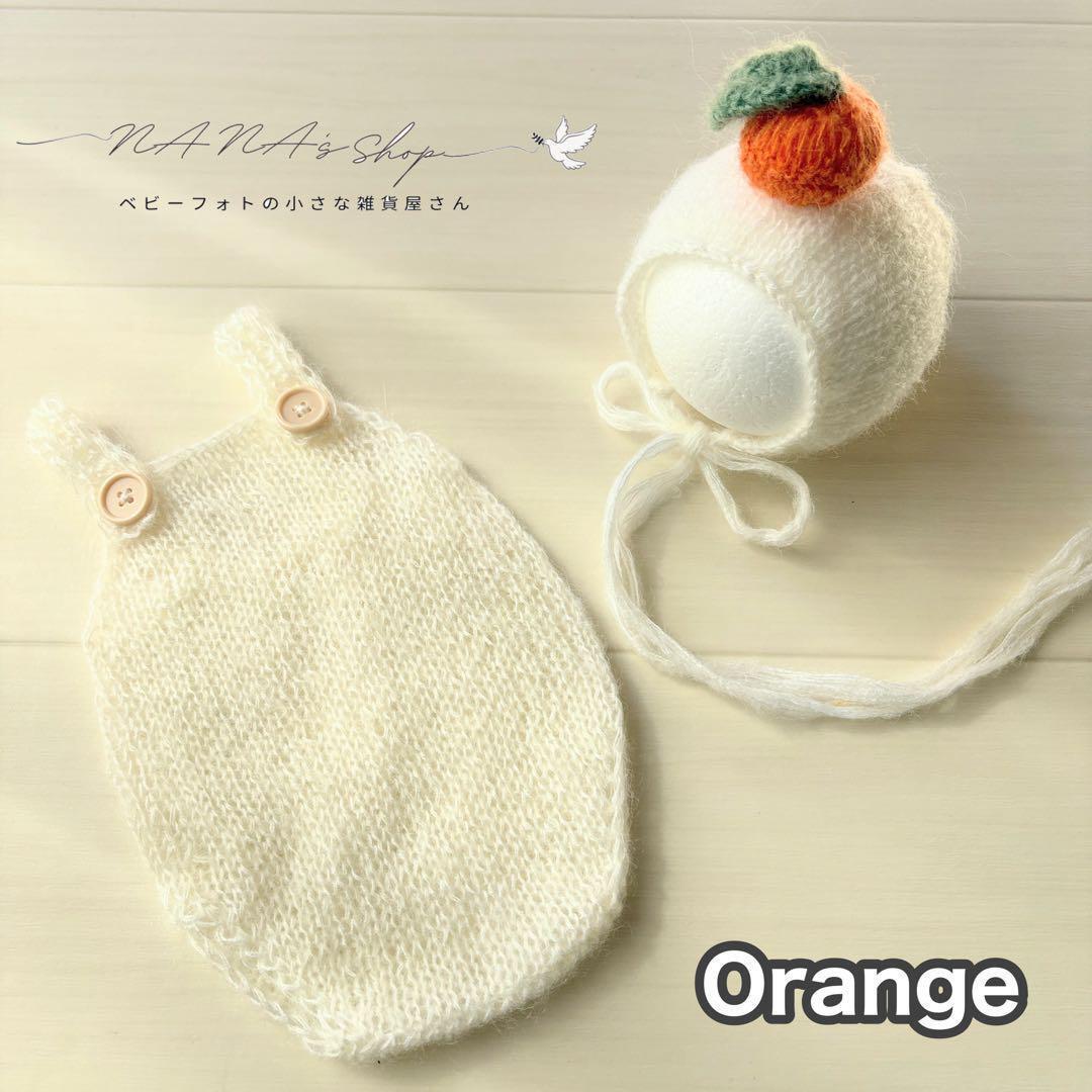 オレンジ♪鏡餅ボンネット ロンパースセット ニューボーンフォト撮影衣装 帽子正月