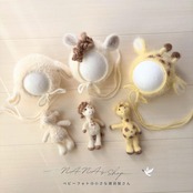 ニューボーンフォトにピッタリな、フワフワ帽子とあみぐるみのセットになります❤️