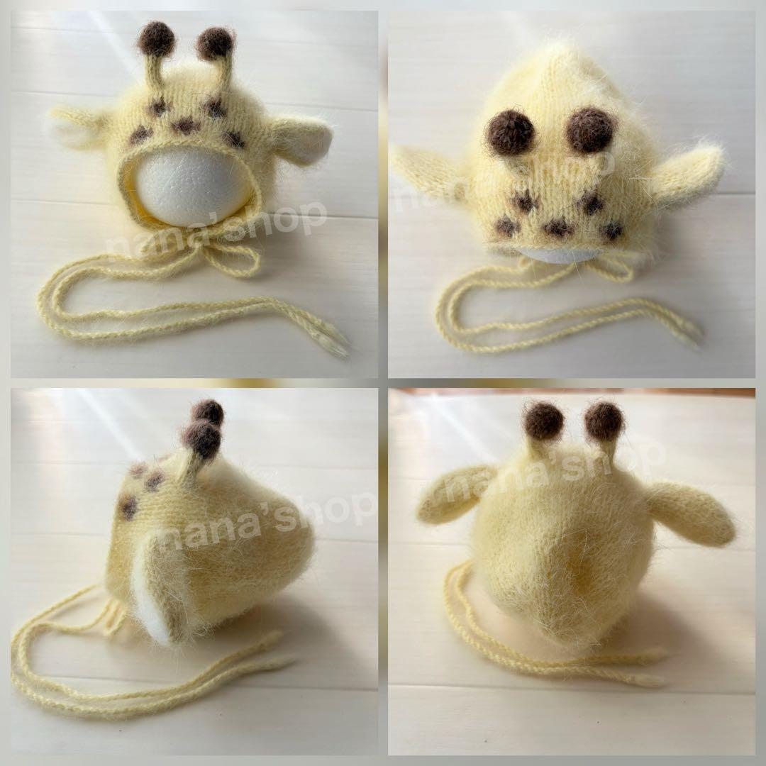 キリン♪帽子とあみぐるみセット ニューボーンフォト衣装 ボンネット 月齢フォト