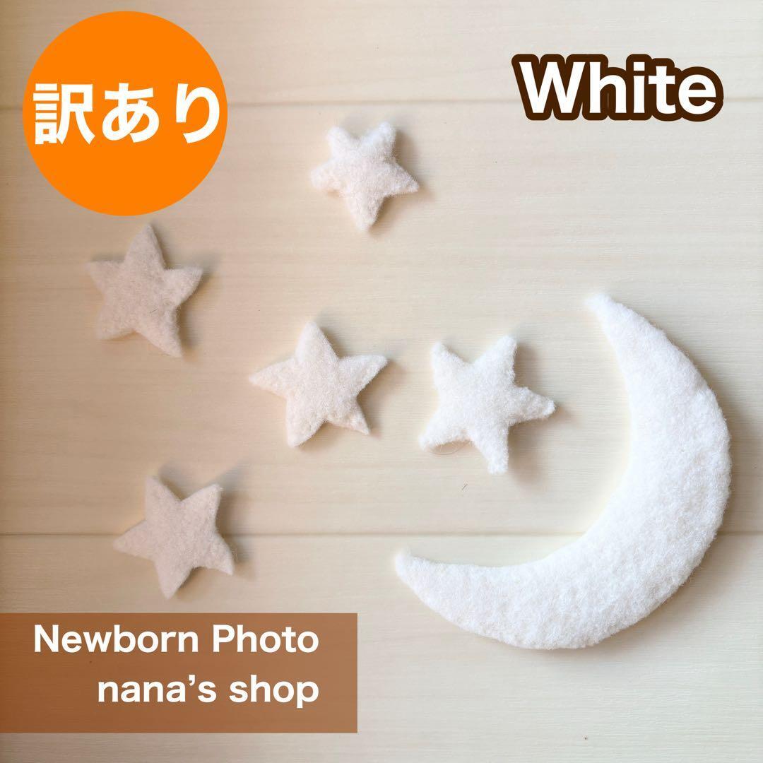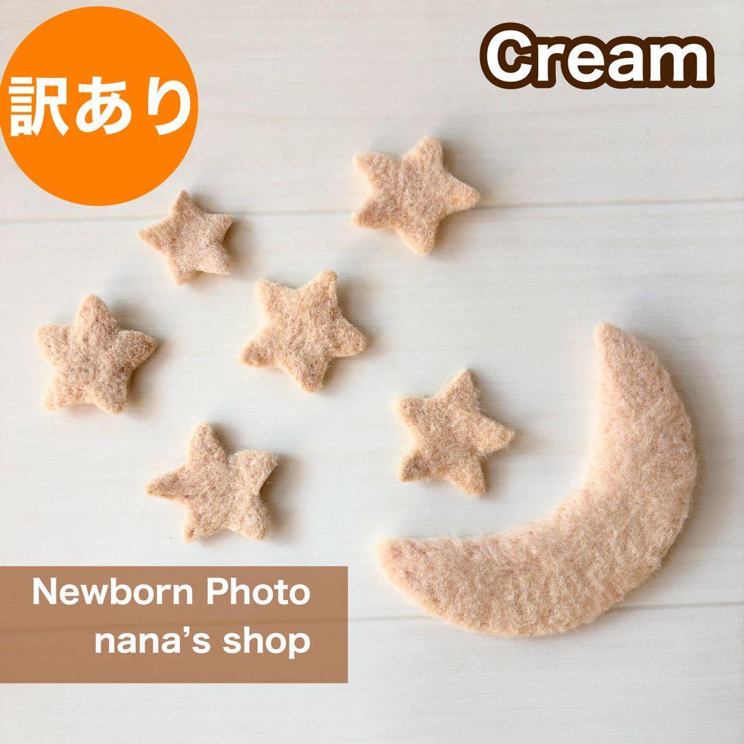 訳ありクリーム♪羊毛フェルト月星6個セット♪ニューボーンフォト撮影衣装記念
