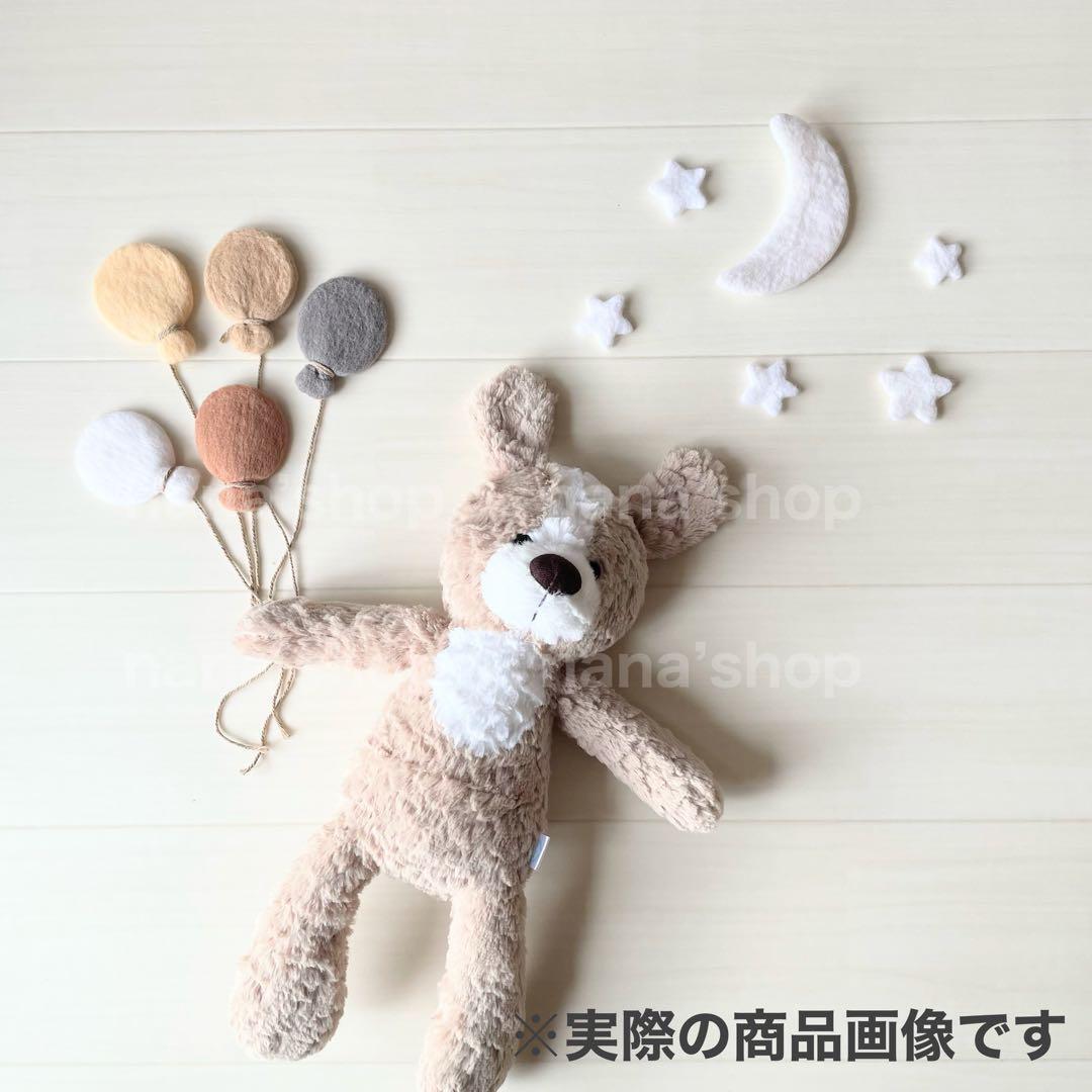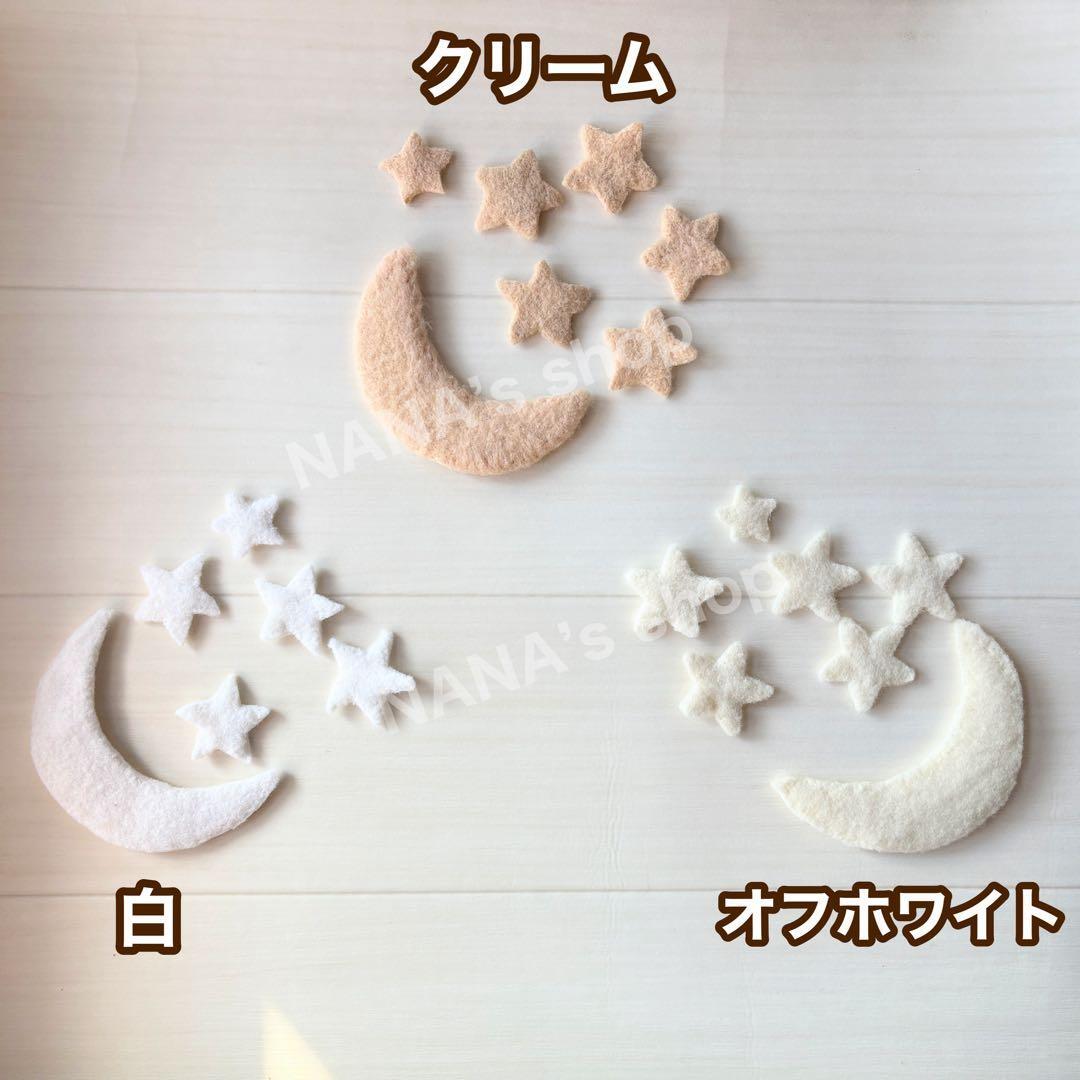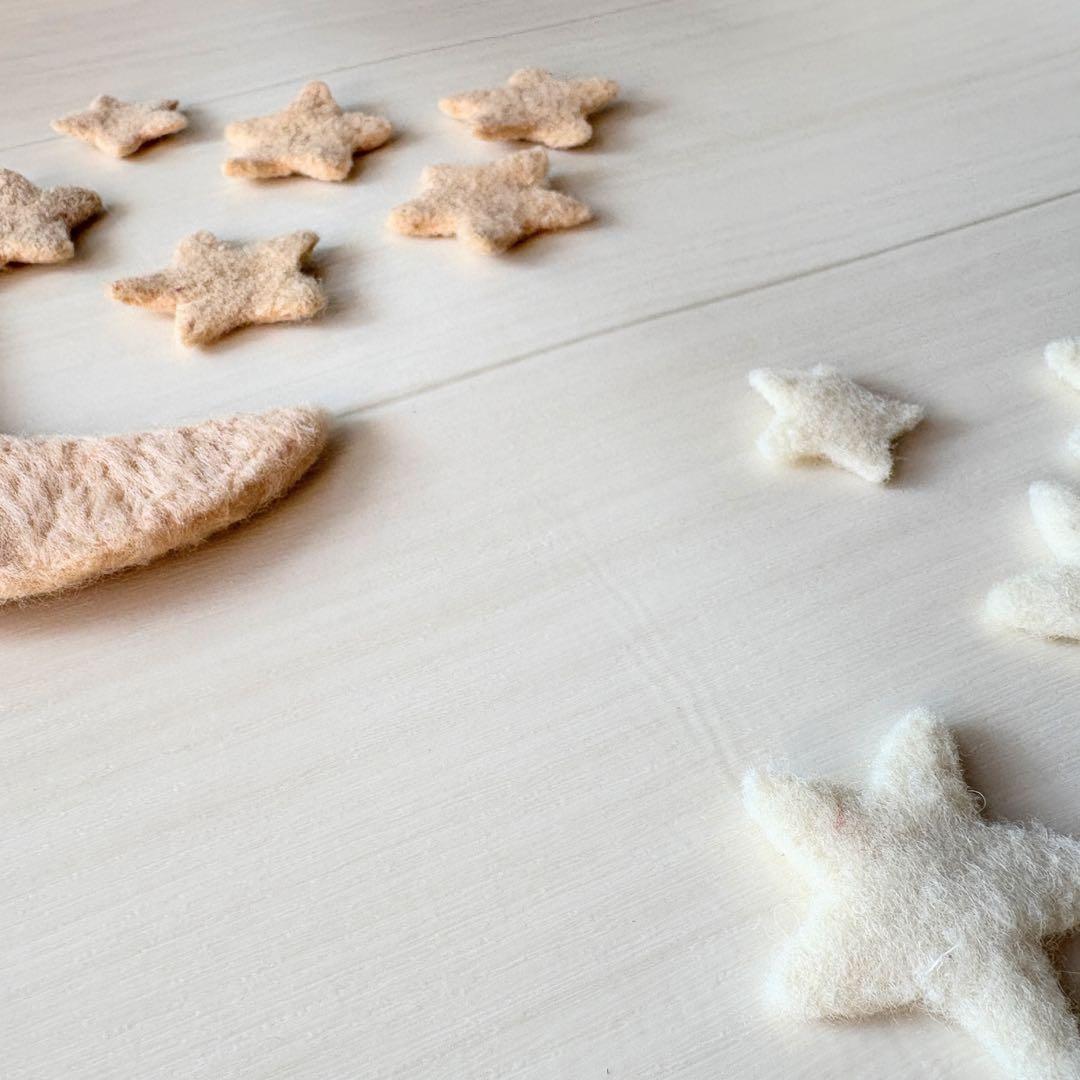 ニューボーンフォトにぴったりの羊毛フェルトで作ったムーン、スターの6個セットになります。