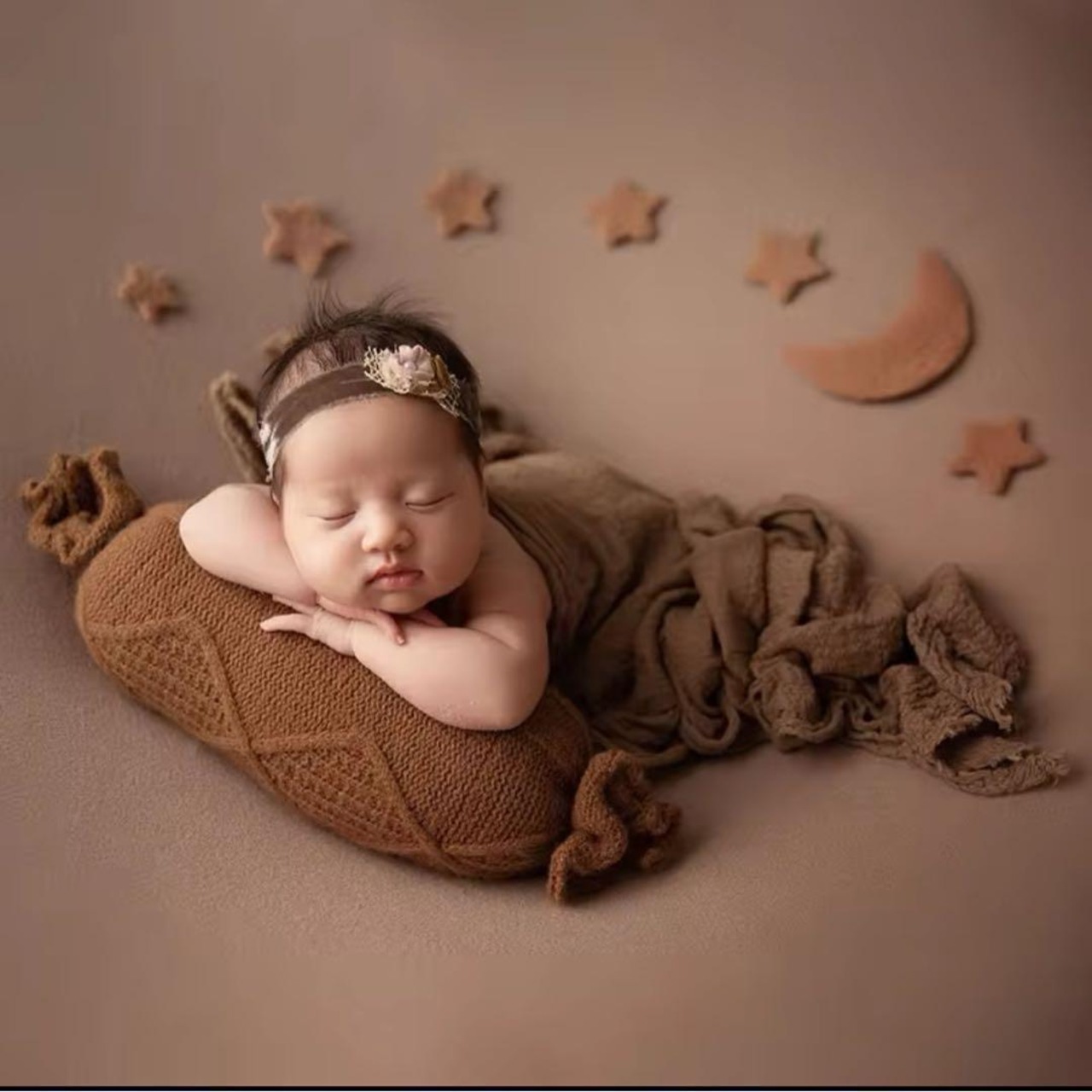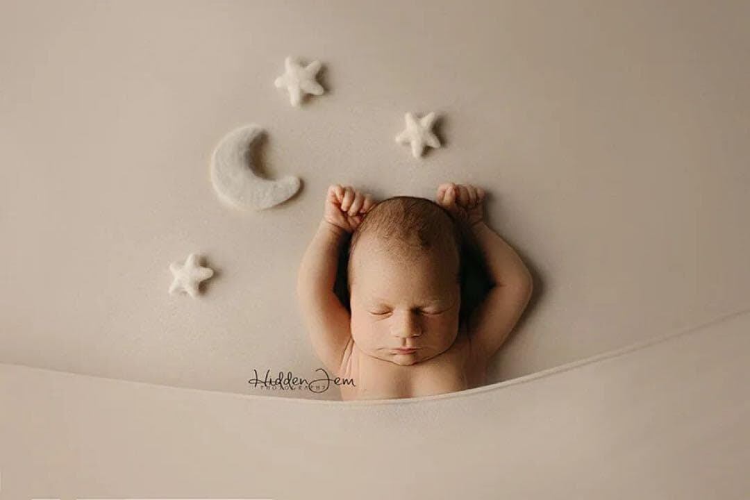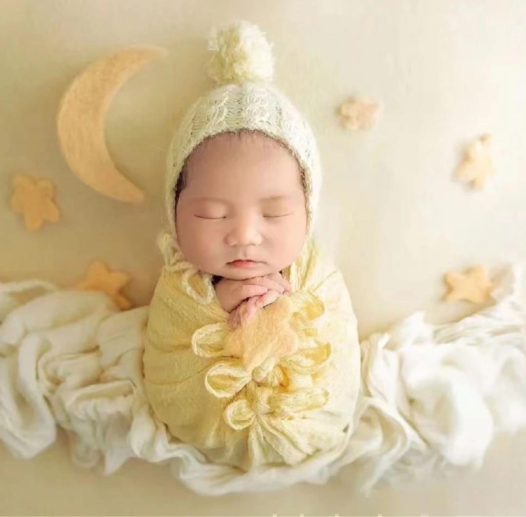 ニューボーンフォトにぴったりの羊毛フェルトで作ったムーン、スターの6個セットになります。