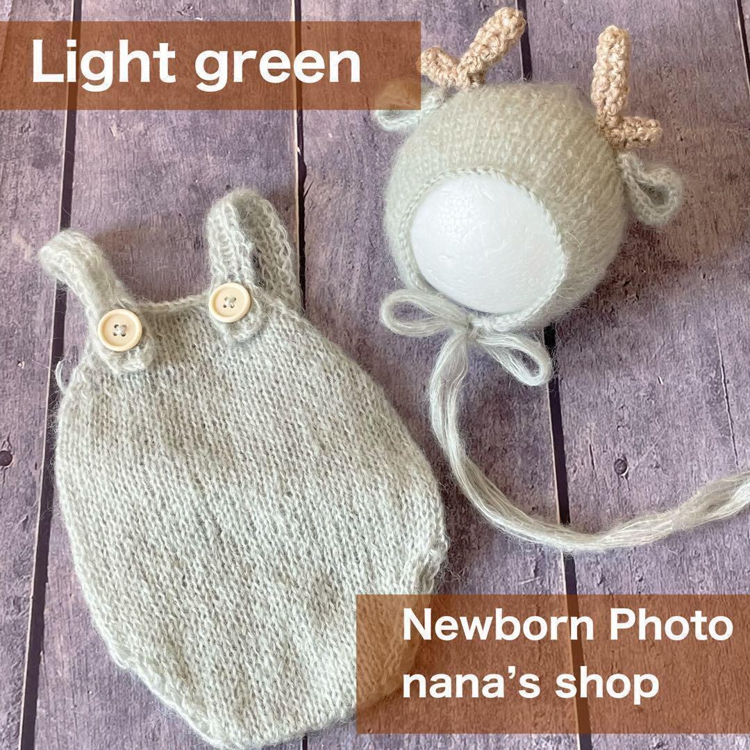 ライトグリーン♪辰耳帽子とオーバーオール ニューボーンフォト撮影衣装 たつ干支