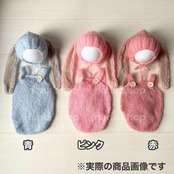 ニューボーンフォトのコスチューム、耳のついたうさぎの帽子と、ウサギのコスチュームの2点セット。