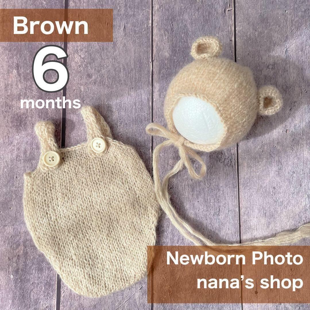 ブラウン♪6ヶ月くま耳帽子とくまコスチューム ニューボーンフォト衣装 ボンネット