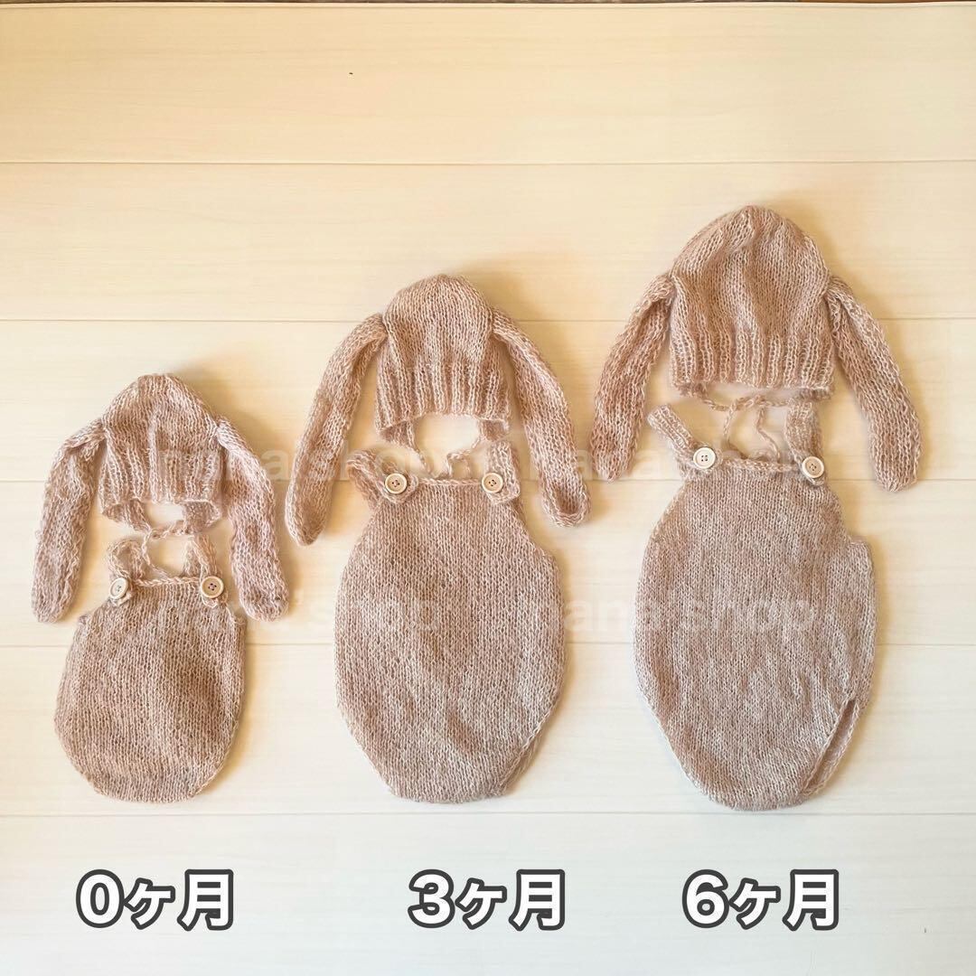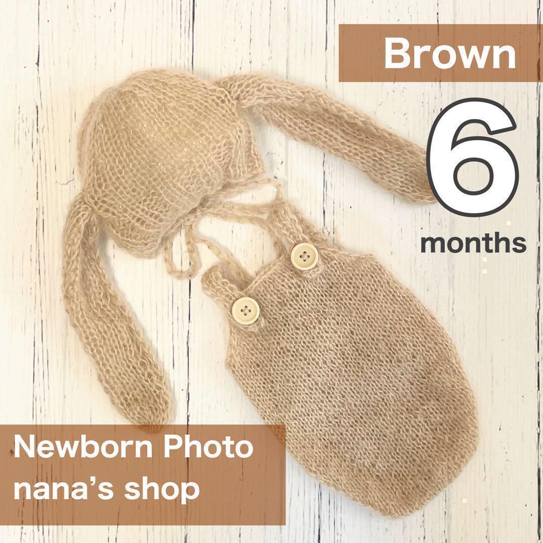 ブラウン♪6ヶ月うさぎ耳帽子とウサギコス ニューボーンフォト衣装 ボンネット