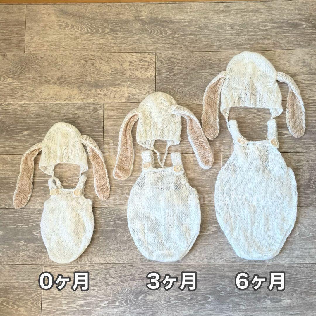 白♪6ヶ月うさぎ耳帽子とウサギコス ニューボーンフォト衣装 ボンネット