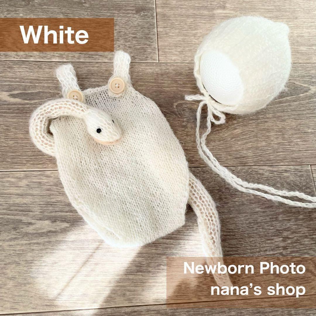 白♪ヘビ帽子&オーバーオール&ぬいぐるみ 巳年 ニューボーンフォト撮影衣装 へび