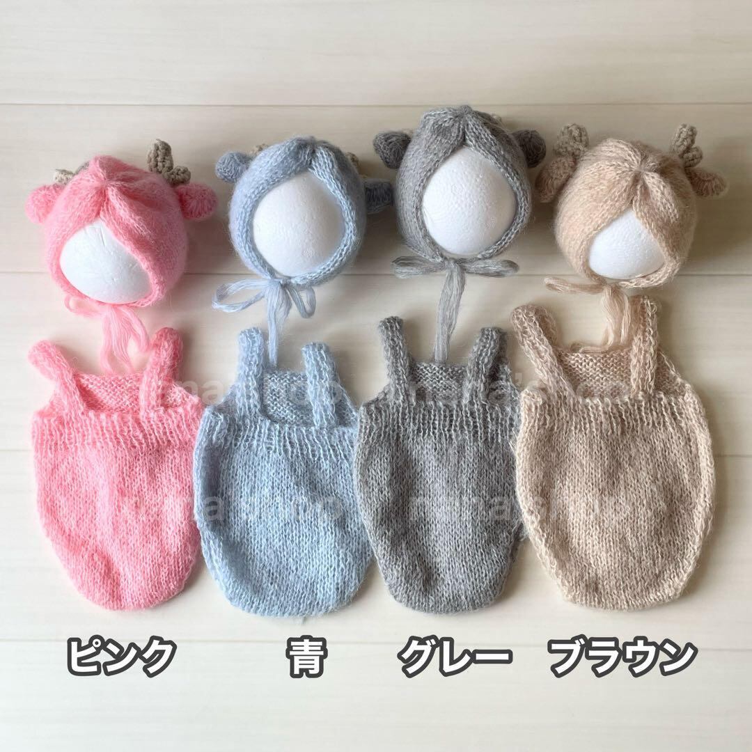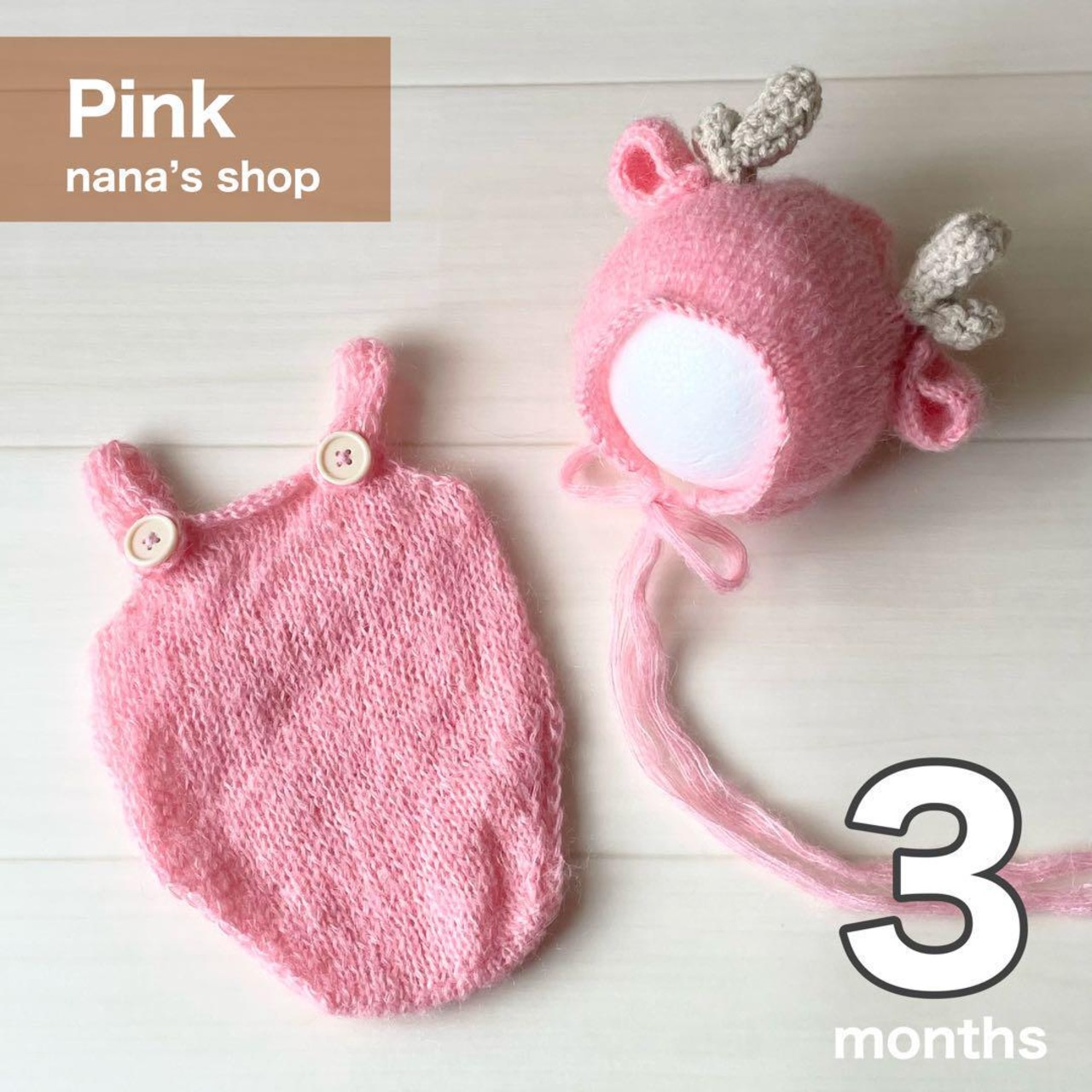 3ヶ月ピンク♪辰耳帽子とオーバーオール たつ ニューボーンフォト衣装 ボンネット