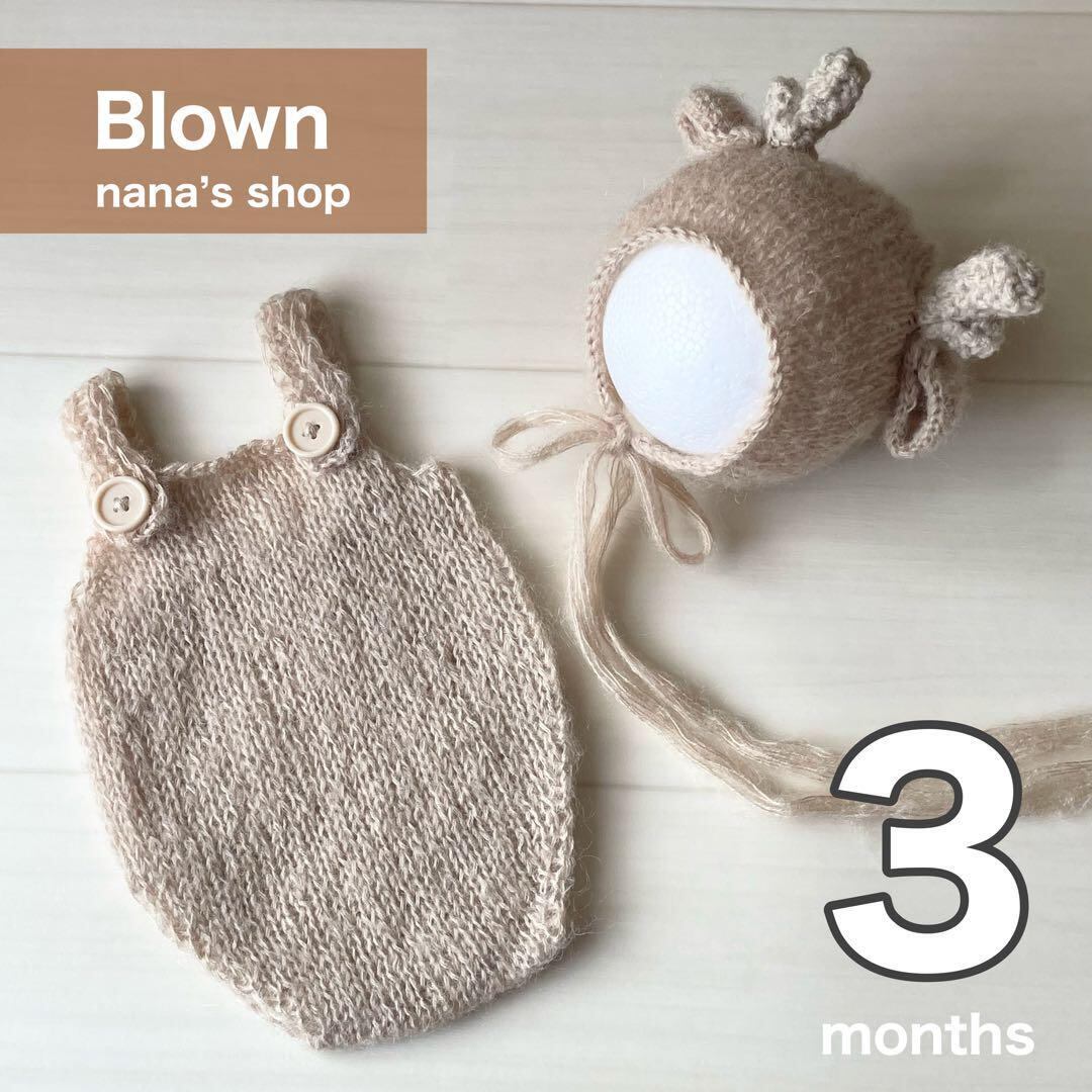 3ヶ月ブラウン♪辰耳帽子とオーバーオール たつ ニューボーンフォト ボンネット