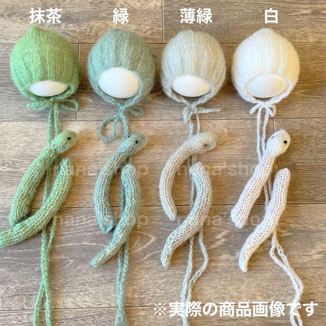 抹茶♪ヘビ帽子&ぬいぐるみ 巳年 ニューボーンフォト撮影衣装 へびボンネット