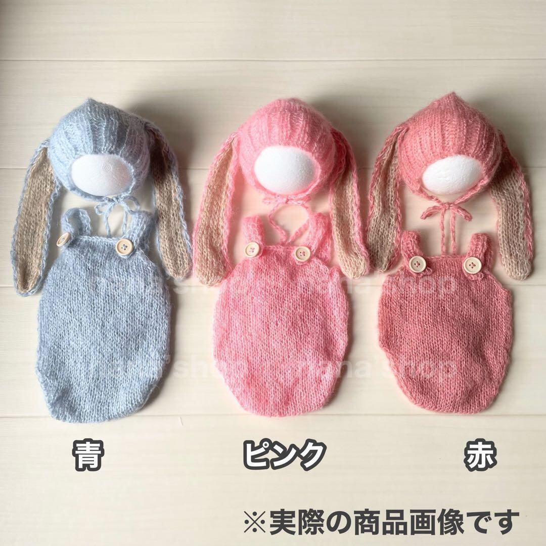 ピンク♪3ヶ月うさぎ耳帽子とウサギコス ニューボーンフォト衣装 ボンネット