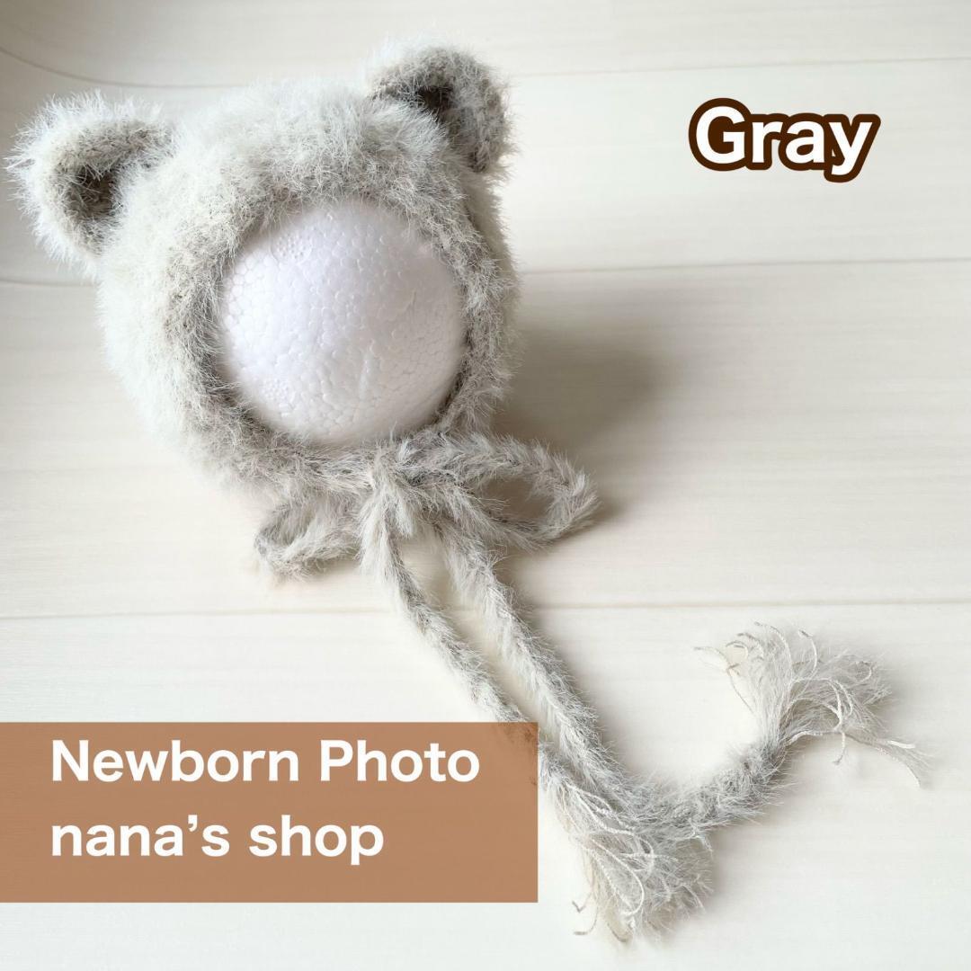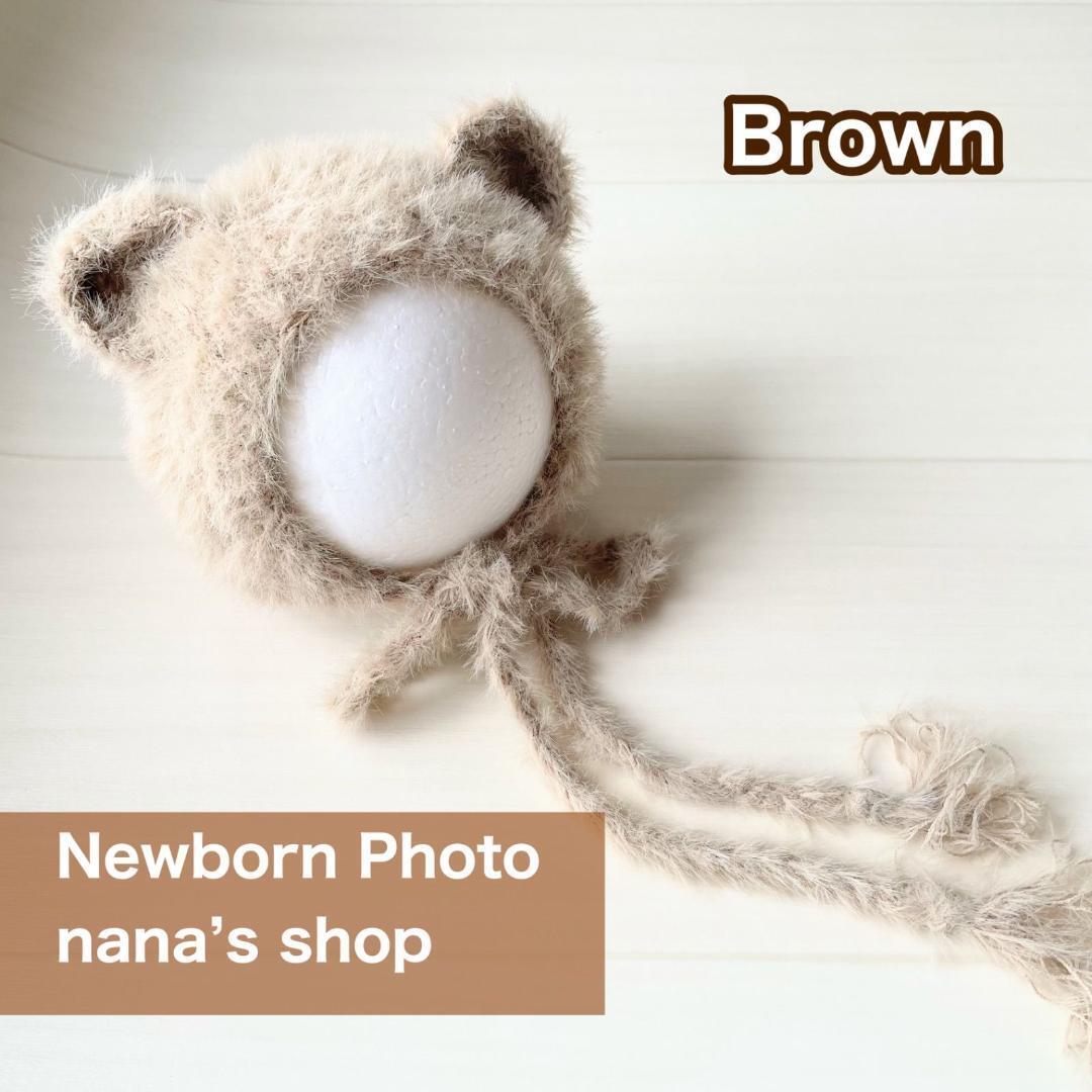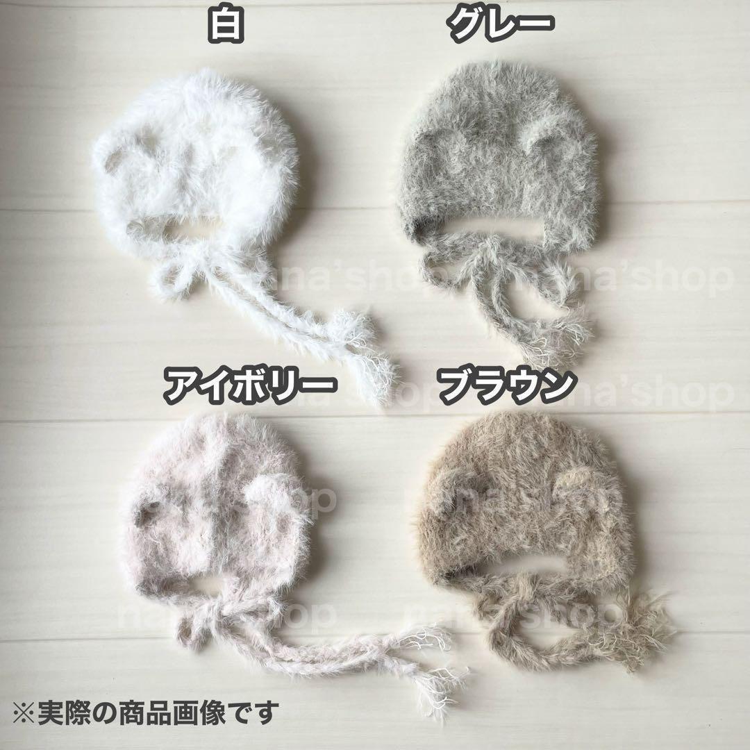 ふわふわくま帽子♪ニューボーンフォト撮影衣装 ベビー 記念写真 ボンネット